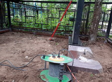 Выложенную брусчатку замыли водой, одновременно смываю строительную пыль, которая в процессе работы осела на оградке и памятниках.